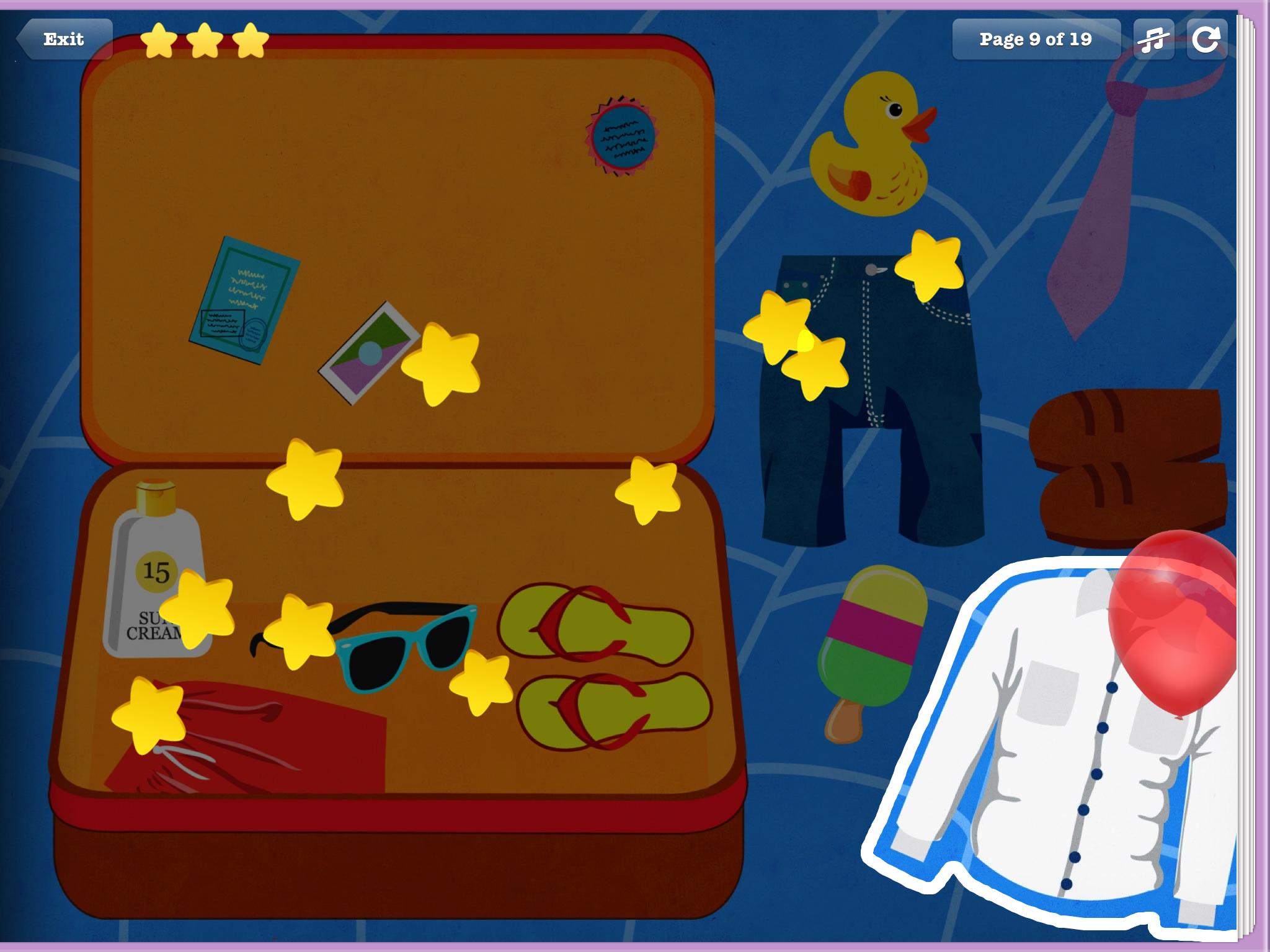 It's summer and Billy is going on vacation! Can you help him to pack everything that he needs?