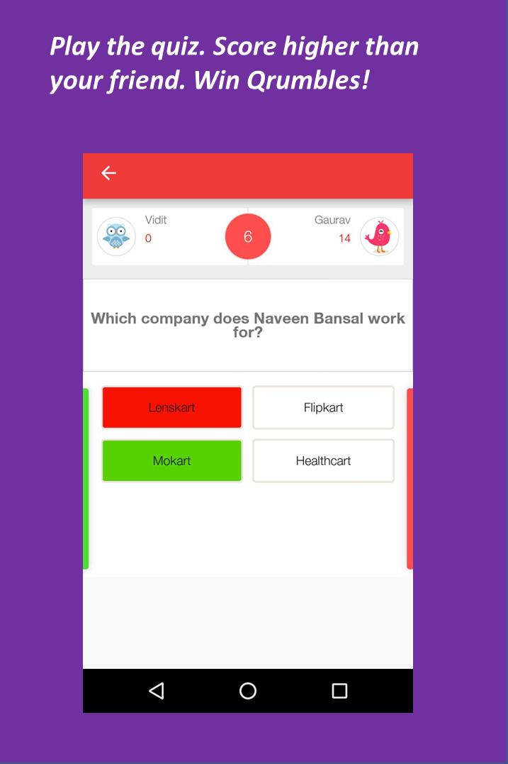 QrumbleBox is a 2 player quizzing game where you can challenge your friends to a quiz and win PayTM cash. It's simple -Challenge Friends, Play Quiz, Bet PayTM cash.
