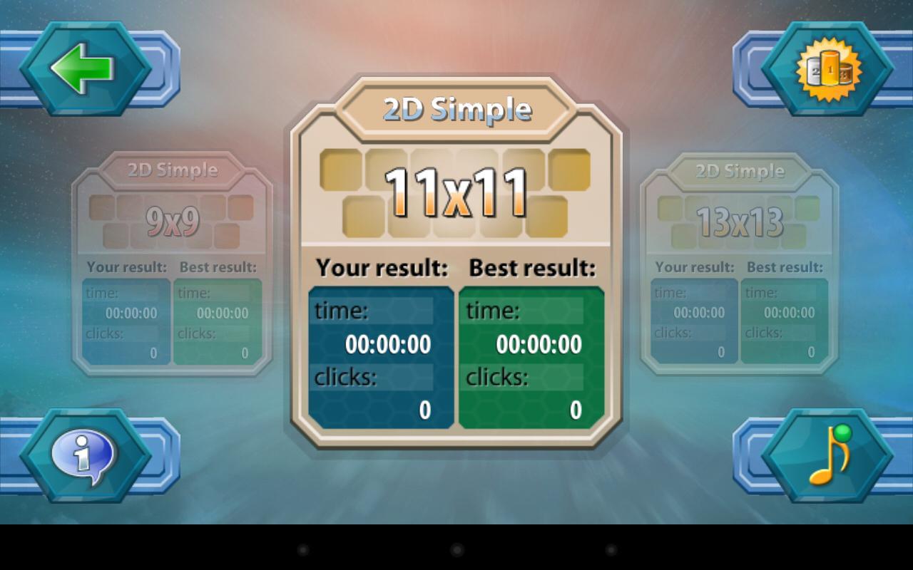 Each game level is generated randomly and has only one solution. Complexity of the game is defined by the size of the game field.