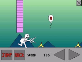 In each stage your goal is to pop 9, balloons, but they could very easily become 99 red balloons. Our hero has drunk tons of guarana and now can't stop running forward, and to make matters worse they have a shiny pair of