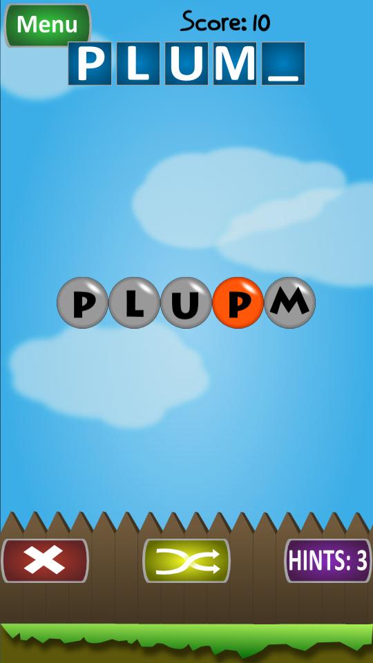 Scrambled Words is a word game designed to train your brain to view things in an unusual way. Unscramble the letters falling from the sky. Form a word with the letters before they hit the fence and pop! There are 3 difficulties Easy, Medium, and Hard. Beat all the words in each difficulty, if you can!
