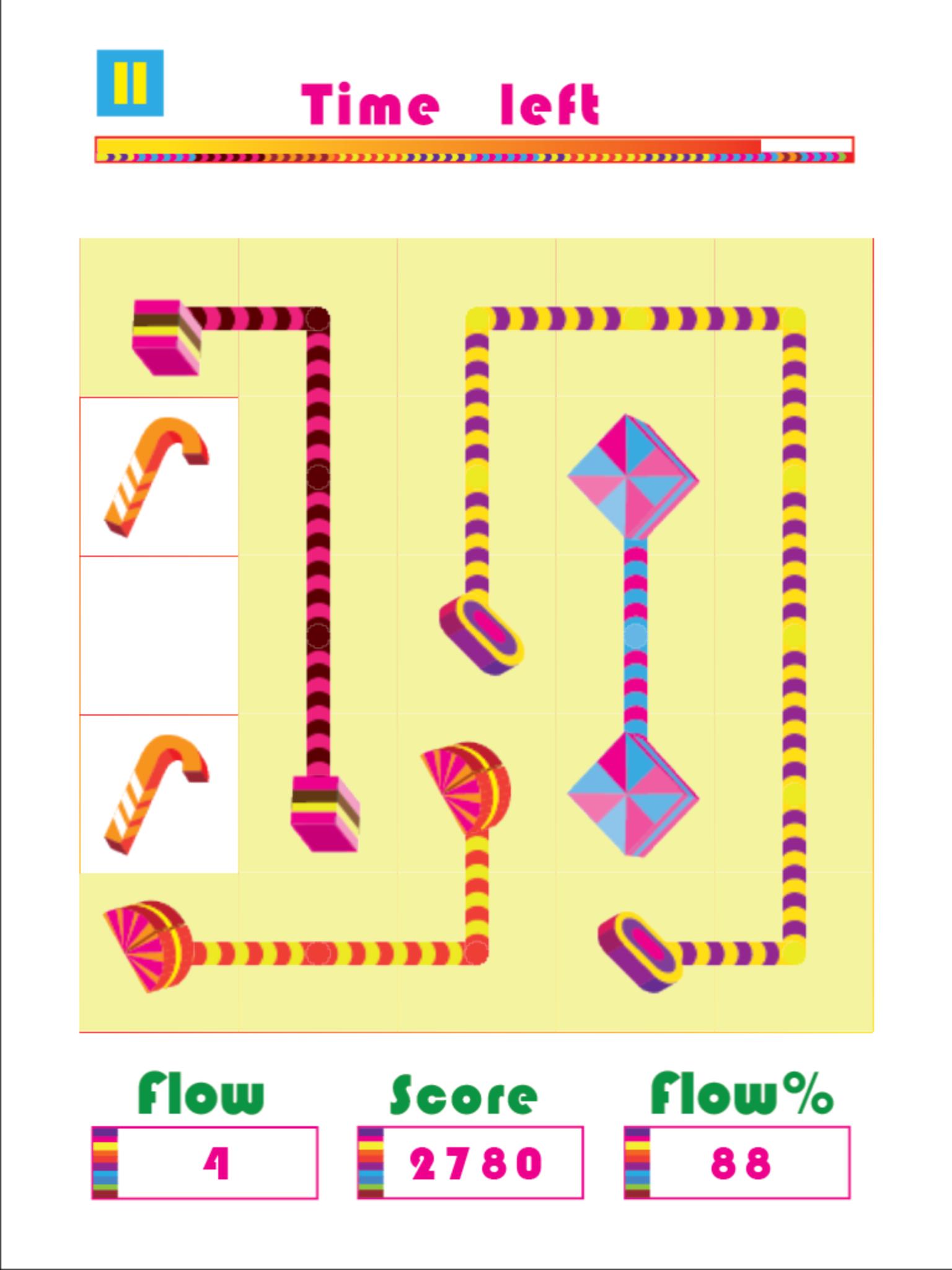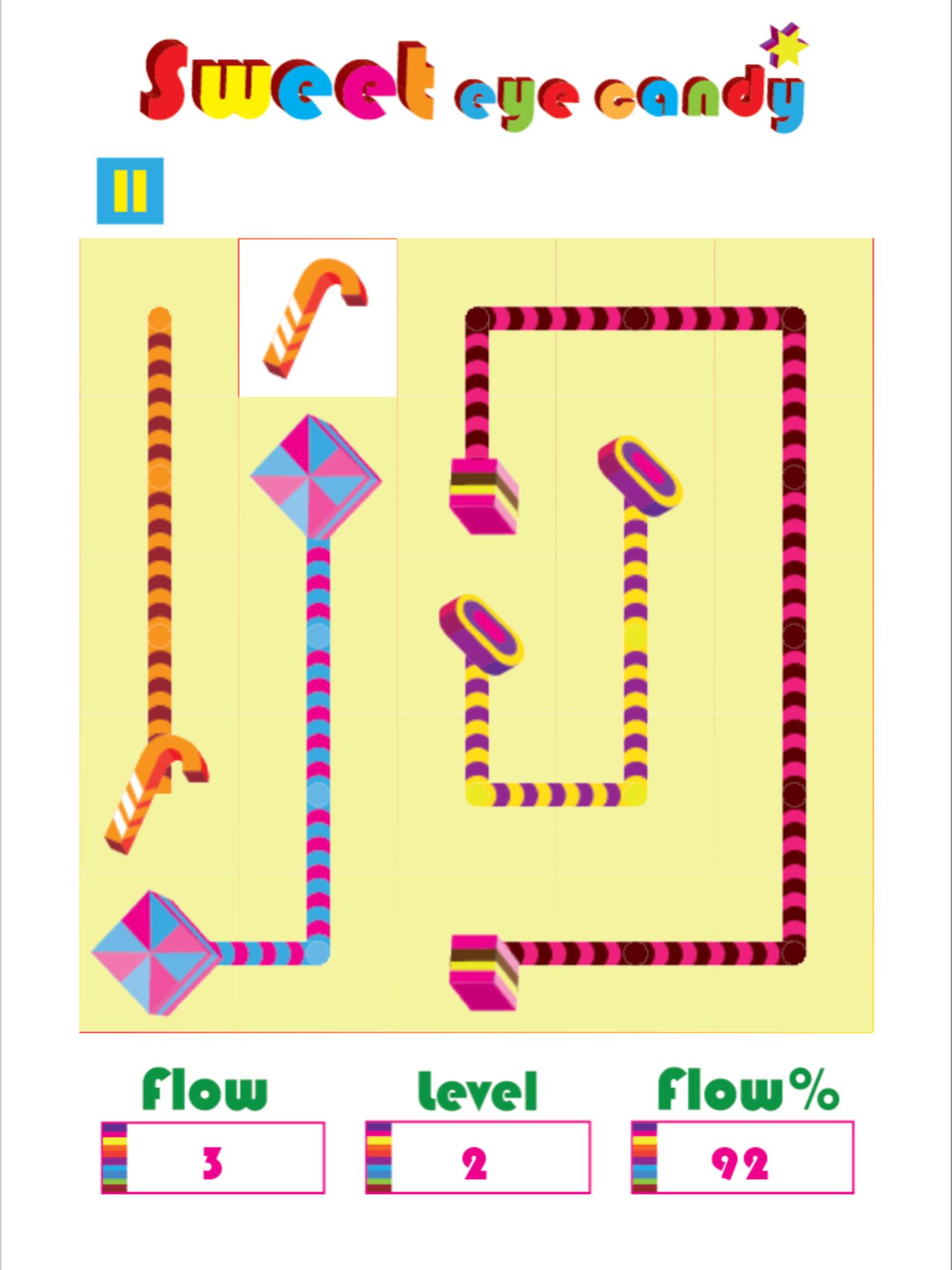 It is important that the entire board needs to be covered, so it is better to think ahead as sugar rush lines on the board are not allowed to overlap. You can easily use your finger and let the flow branch over the board and create bridges between the candy symbols!