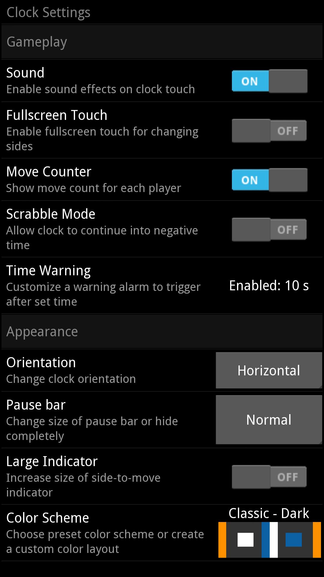 •Dynamic time-bar displays each player's relative time remaining at a glance - also acts as a pause button. The time-bar can be hidden.