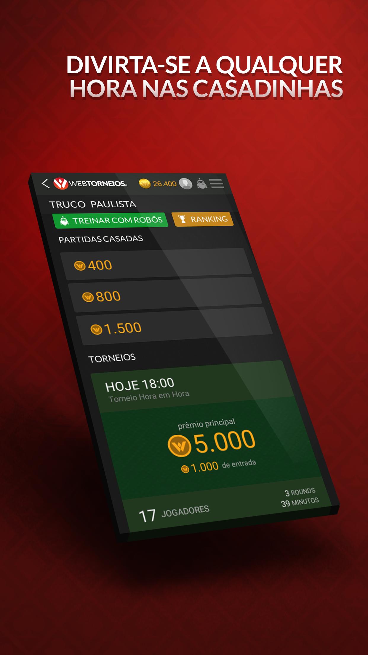 The application Truco Mineiro Free Online with tournaments and Casadinhas! Download now and start playing WebTorneios Truco Mineiro with real players. Earn 10,000 virtual coins to start having fun. free refills all day!