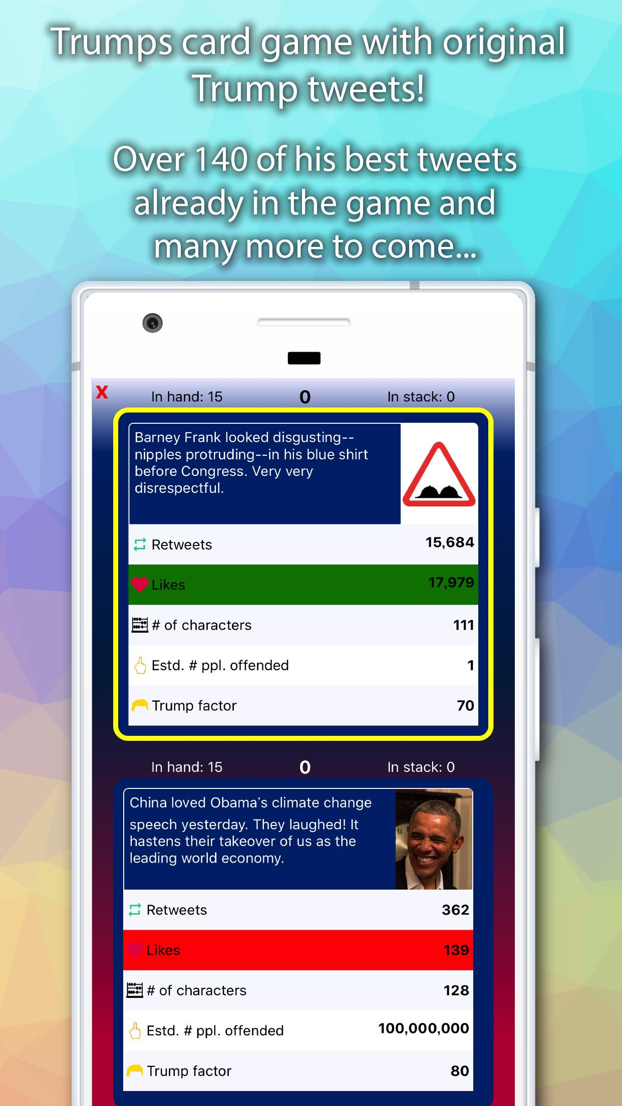 Fun card game with @realDonaldTrump tweets, story mode and many more mini games!