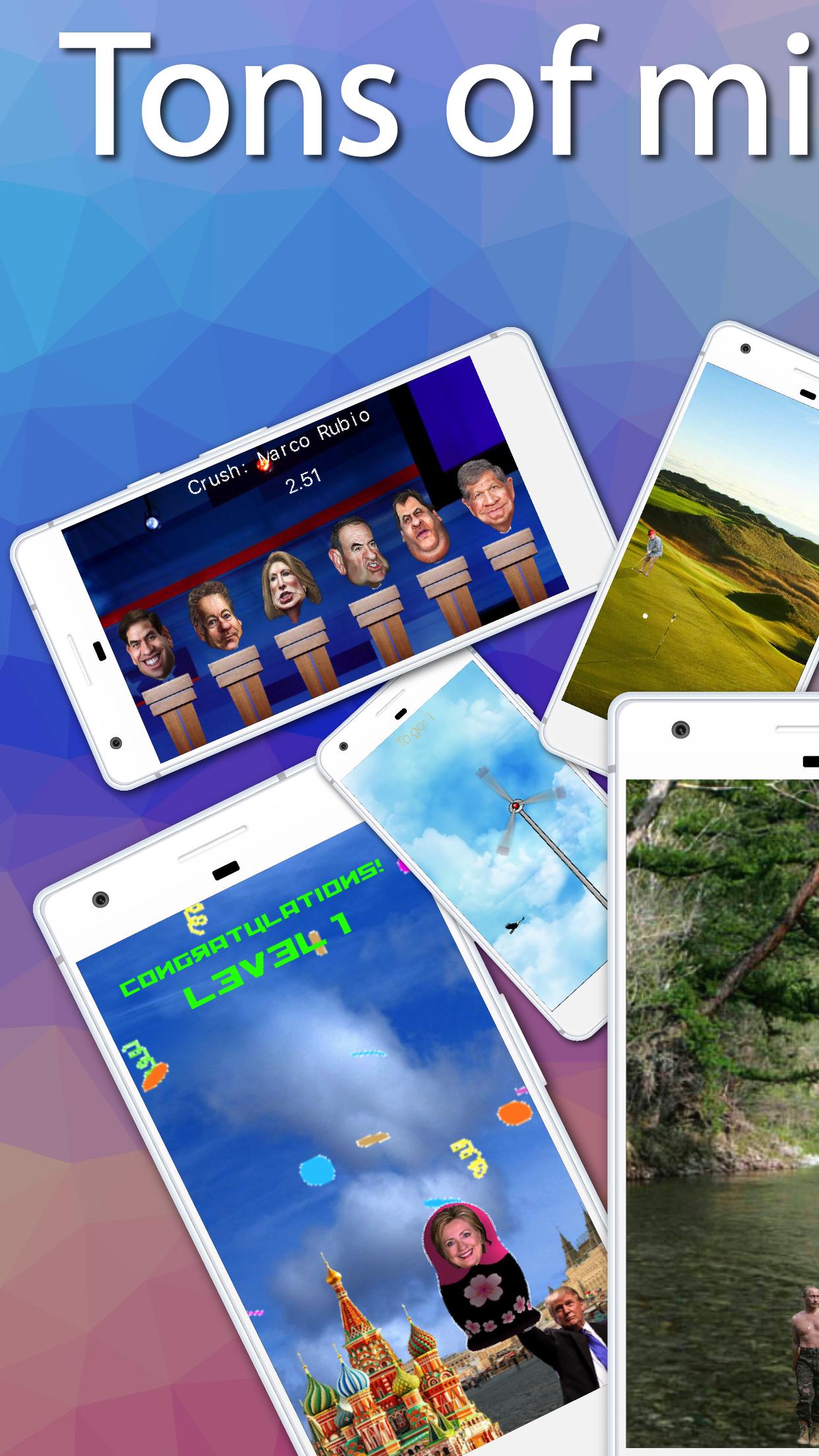 In the latest version we have added 4 more mini-games, bringing the total to 21, but many more are still under development and will be released shortly. The presidential mini-games already released are: