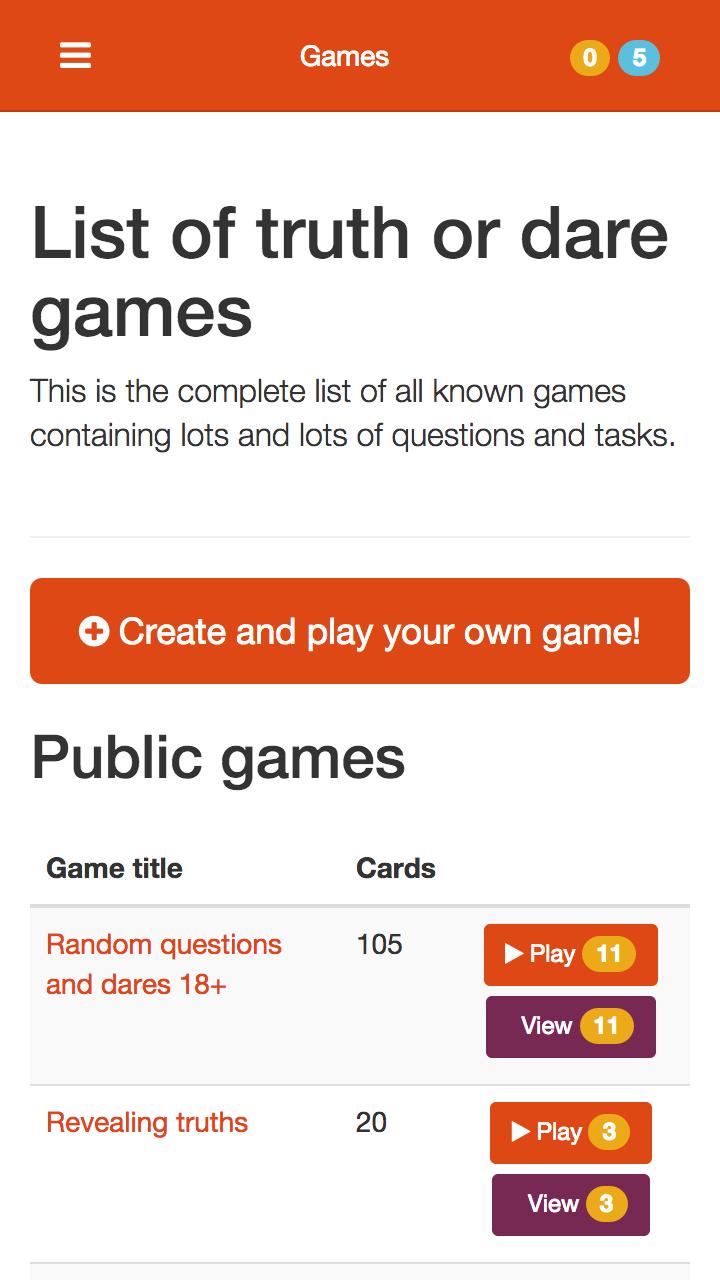 Create your own truth or dare games or choose from the near infinite collection.