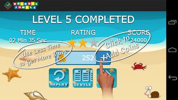 Vocabul Jumble gives you option to play against a time-limit or a relaxed game play (no time-limit - in-app purchase needed) to score points, collect coins & earn star rating for each level.