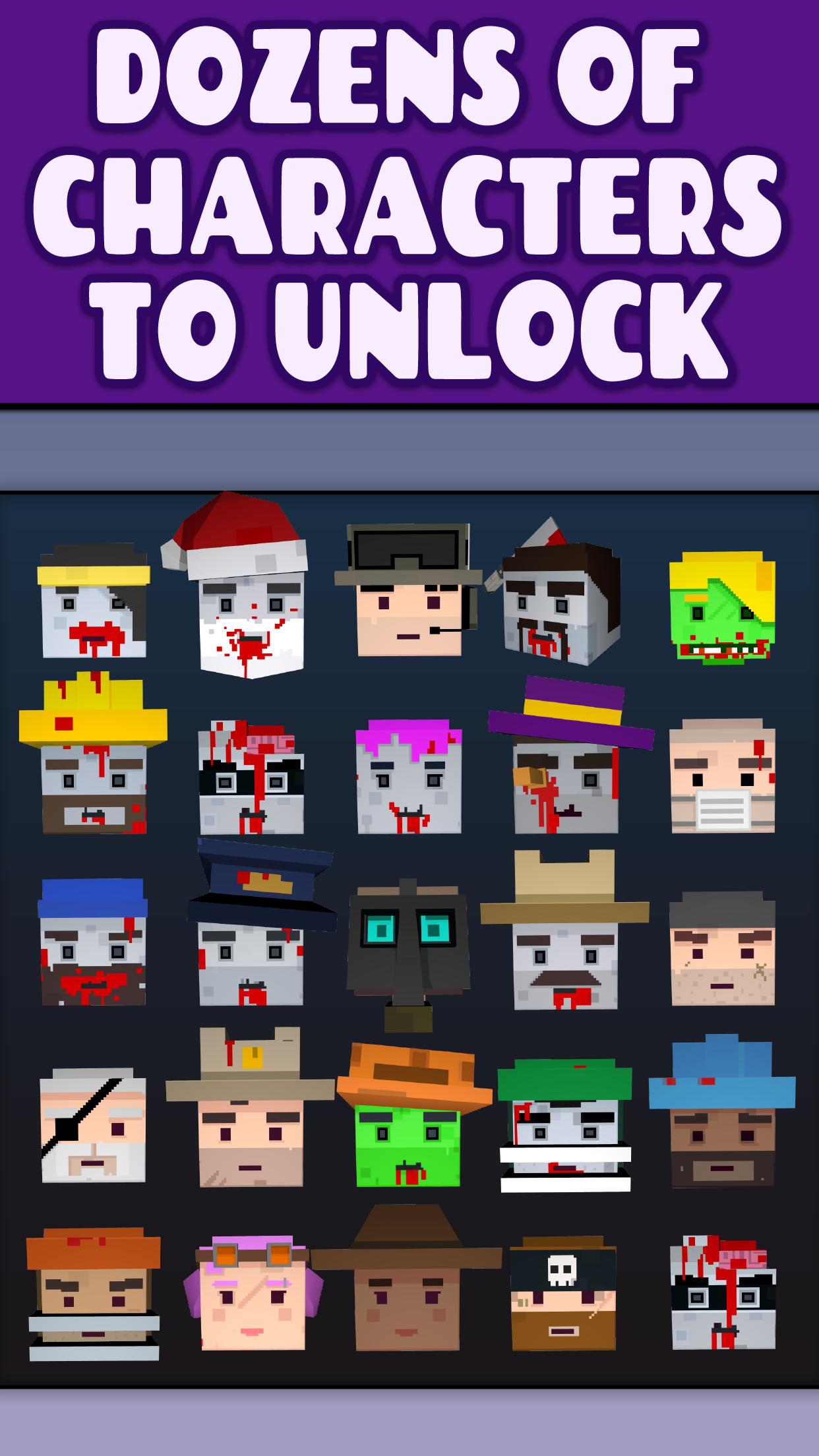 Collect shiny green zombie skulls to unlock new characters. Every 100 skulls you collect gets you a free character to play with.