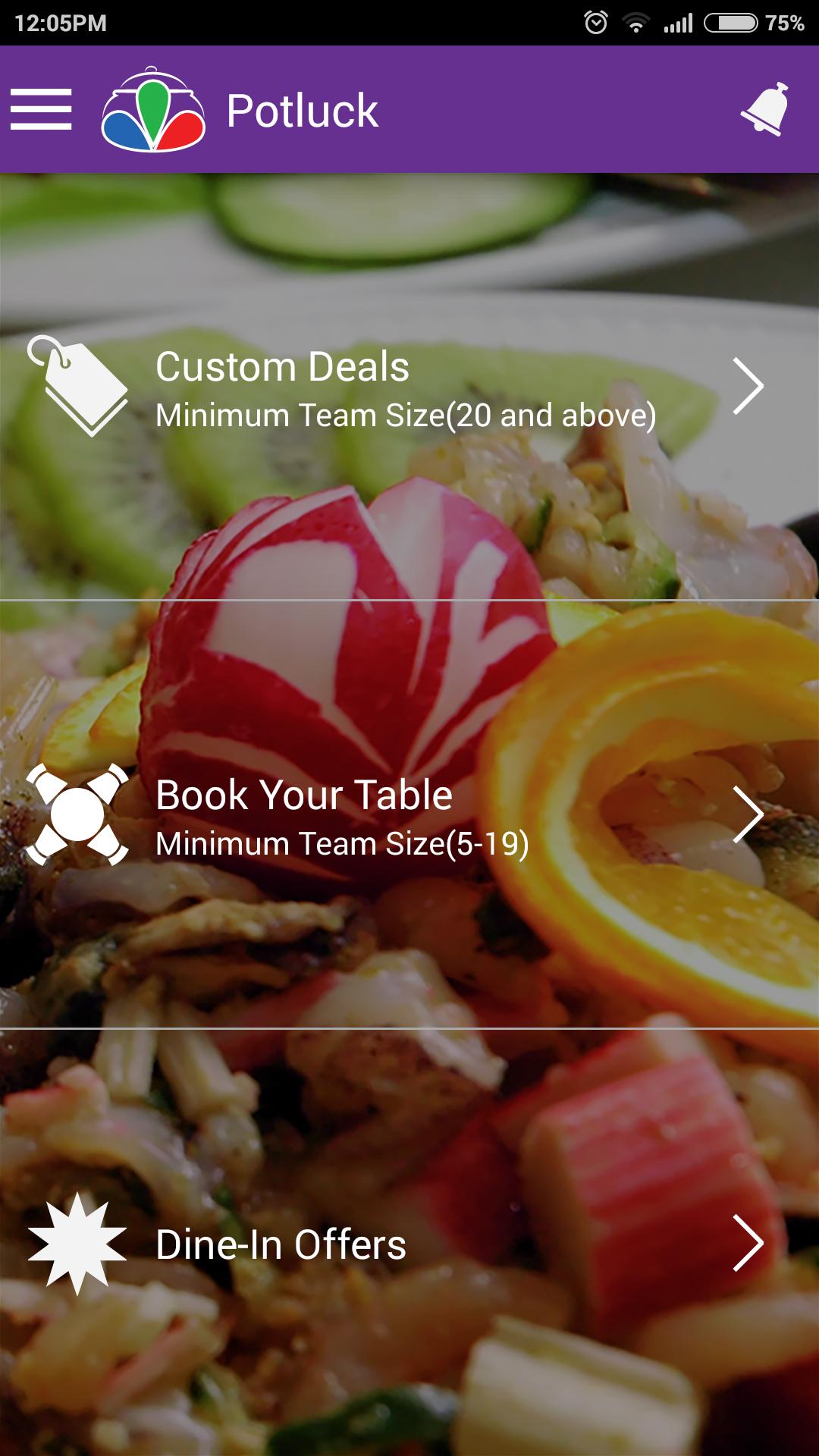 Pencarian Anda untuk penawaran restoran yang luar biasa menjadi jauh lebih mudah !! Potluck adalah aplikasi seluler yang memberikan penawaran terbaik dari restoran, pub, dan kafe di seluruh Bangalore. Kami memiliki 3 fitur terhormat yang melayani 3 persyaratan berbeda.