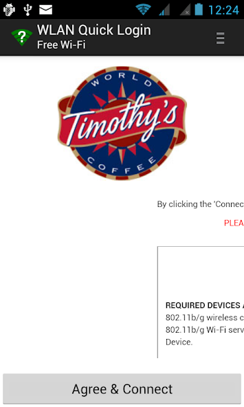 WiFi Quick Login membuatnya sederhana dan mudah untuk masuk ke hotspot WiFi publik dan jaringan tamu. Satu tombol klik secara otomatis menerima syarat dan ketentuan, mengisi kata sandi yang diingat, dan menandatangani Anda. Tidak ada lagi layar gulir untuk mencari tombol. No More Retyping Passwords, tidak ada lagi membuka browser untuk masuk sebelum memeriksa email Anda.