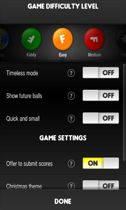 * Dukungan buta warna (orientasi simbol dapat digunakan untuk membedakan bola berwarna yang berbeda)
