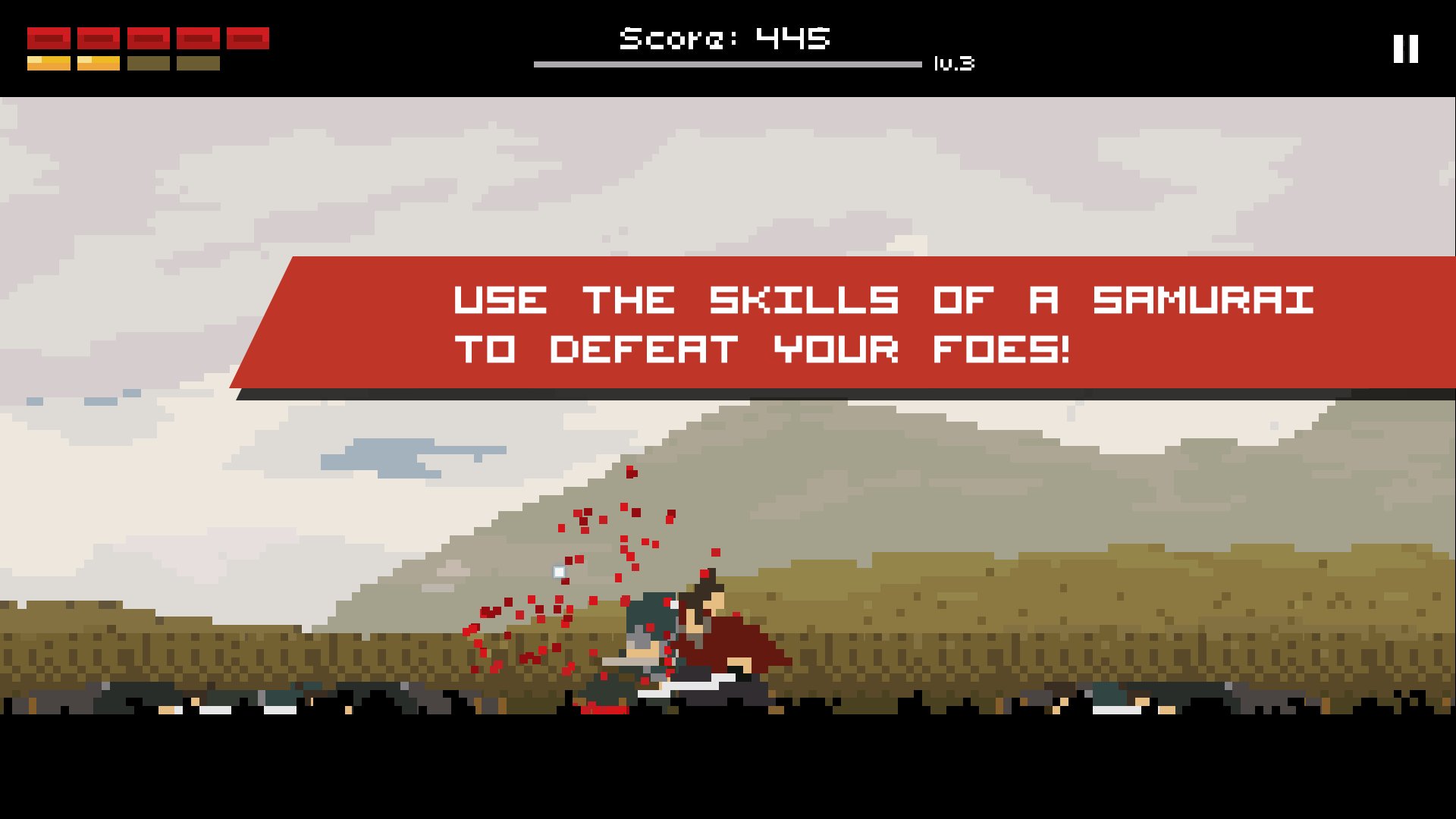 Pengalaman gaya permainan khas yang dibuat untuk game seluler. Masked Samurai mengambil sentuhan baru pada genre hack &slash dengan mencampurkan beberapa elemen rpg ke dalam game. Ketuk dan tahan untuk memperlambat waktu dan mendapatkan daftar opsi berbeda di mana Anda dapat menyerang, menjaga, dan melakukan berbagai tindakan seperti di RPG.
