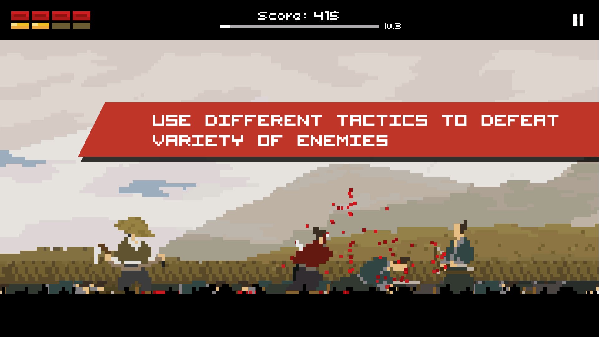 Temukan lebih banyak serangan dan tindakan semakin sering Anda bermain untuk menemukan cara baru mengalahkan musuh Anda. Sesuaikan pemuatan tindakan Anda dengan lebih dari selusin tindakan untuk dipilih dan ciptakan gaya bermain unik Anda sendiri. Hadapi berbagai macam musuh dengan ciri khasnya masing-masing mulai dari samurai, pemanah, ninja, dan lain-lain. Berbagai jenis situasi mengerikan mengharuskan Anda merencanakan pendekatan untuk mengatasinya.