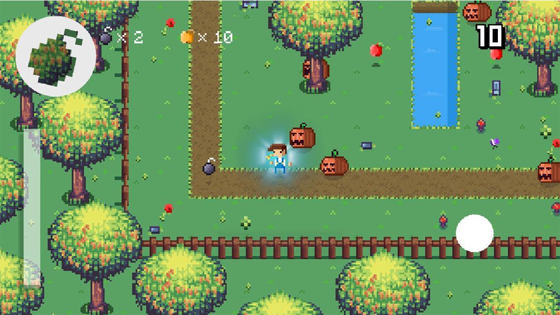 Ini adalah permainan top down di mana Anda pemain (petani AL) mencoba menghindari sebanyak mungkin labu.