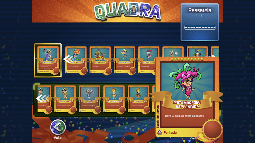 有名なサプカイなど、さまざまな場所でパレードを整理します。バッテリーを訓練し、フロートを選択し、翼をアニメーション化して、ゲームに作られたユニークなサンバを鳴らしましょう!そして、ショーの後に残された素材を収集することを忘れないでください。新しい翼と小道具のためにサンバカシュと原料を生み出し、コレクション全体を完成させるのに役立ちます!