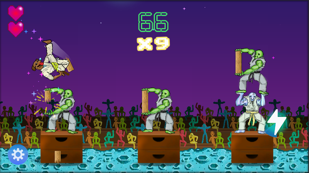 このゲームは、ボードを壊すことで彼のTae Kwon Doスキルをテストする犬を特徴としています。あなたの能力はあなたの最終スコアに反映されます。