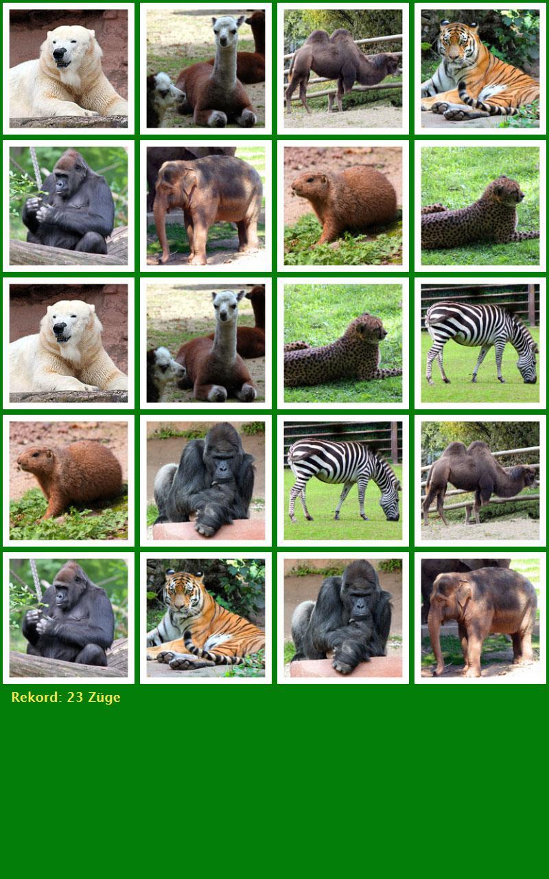 ゲームが開始されると、すべてのカードが表示されます。これは、カードをタップすることで明らかになります。 2番目のカードが最初のカードと同一である場合、両方とも発見されたままで、それ以外の場合は両方が逆になります。ゲームの目的は、すべての写真のペアをできるだけ少数見つけることです。