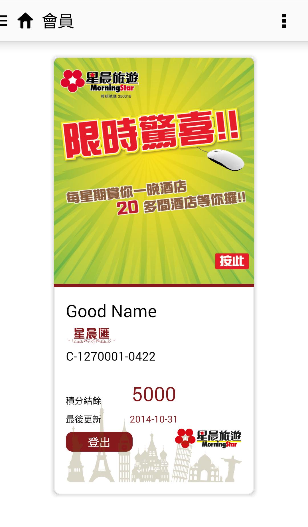 Morning Star Travel Service Limited Mobile App은 아웃 바운드 투어, 패키지 및 크루즈 휴가를 포함한 다양한 여행 제품 정보를 제공합니다. 또한 모바일 결제 시스템을 통해 투어 및 패키지를 강렬하게 구입할 수 있습니다. 또한 Morning Star 트래블 클럽 회원으로 등록하여 일련의 특권과 최신 프로모션을 즐기십시오. 와서 지금 우리와 함께!