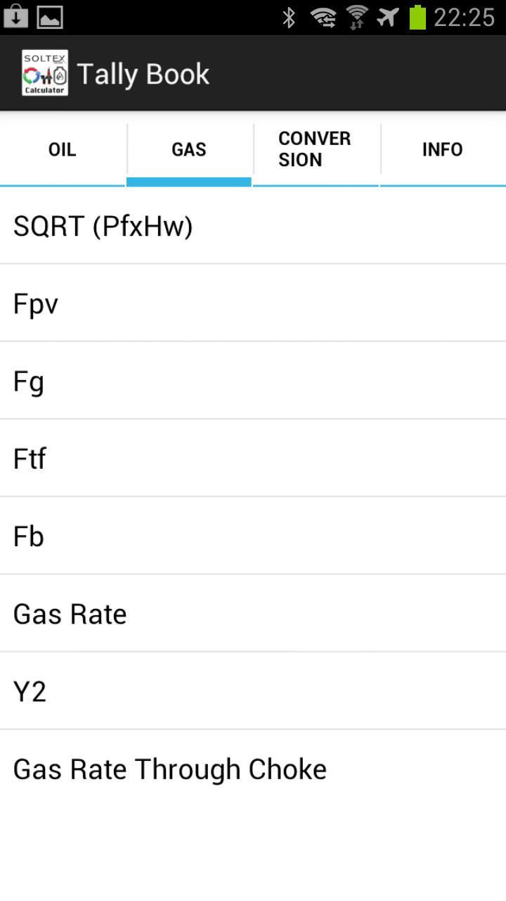 SOLTEX TallyBook 은 유용한 응용 프로그램으로, 오일 속도, 가스 속도와 같은 잘 테스트 계산을 쉽게 수행하고 모든 단위 유형에 대한 컨버터를 제공 할 수 있습니다.