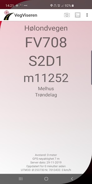 귀하의 위치에 대해서는 Vegreferanse를 참조하십시오. Vegreferansen은 National Road Data Bank에서 검색했습니다