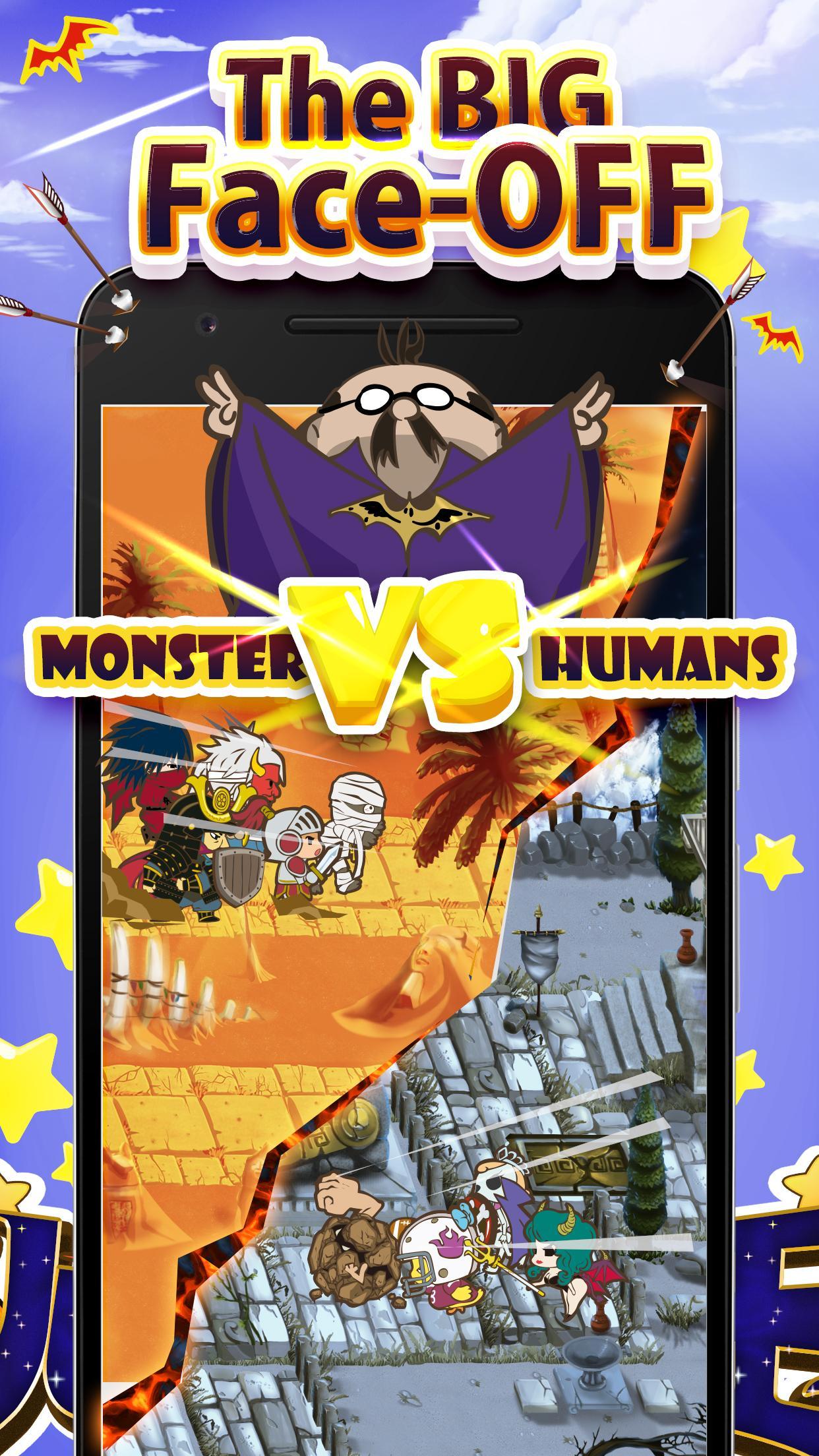 영웅이 Maou를 공격하지 못하도록하기 위해 몬스터를 똑똑하게 배치하고 조정하십시오!