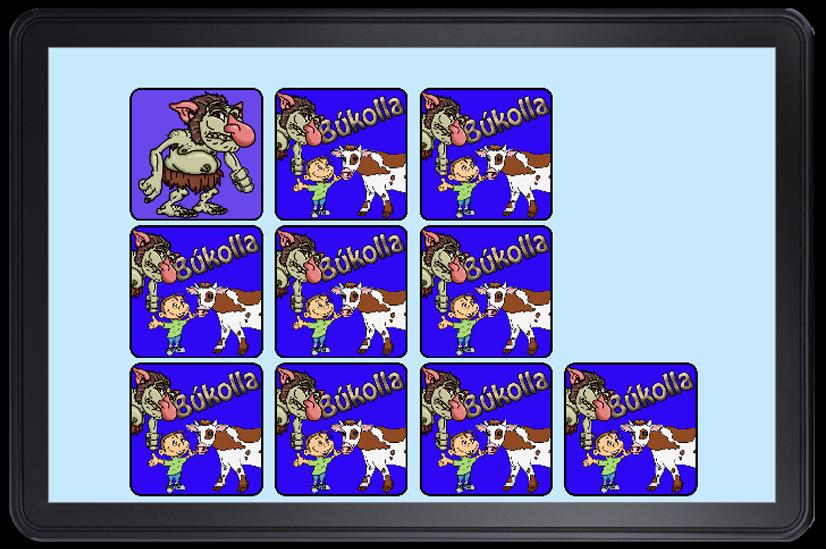 클래식 메모리 게임. 경기, 에테르 12 장 또는 8 장의 카드를 찾으십시오. Bukolla Story, Gunnar, Jón, Eva, Búkolla 및 Troll의 모든 캐릭터. 아이들이 이해하기 쉬운 일치 게임을 즐기게하십시오.