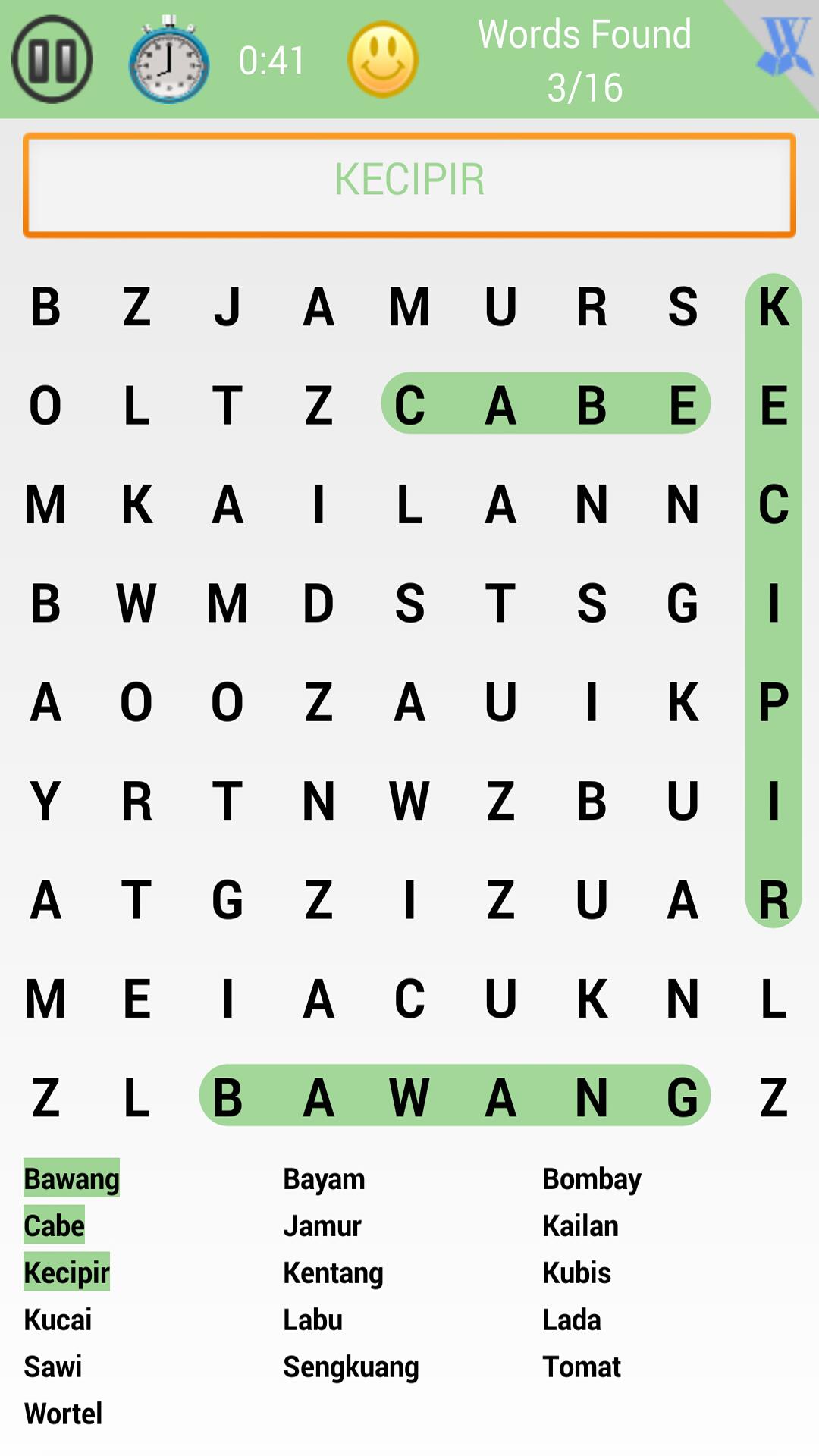 무작위로 나타나는 글자 모음에서 올바른 단어를 찾아야합니다.