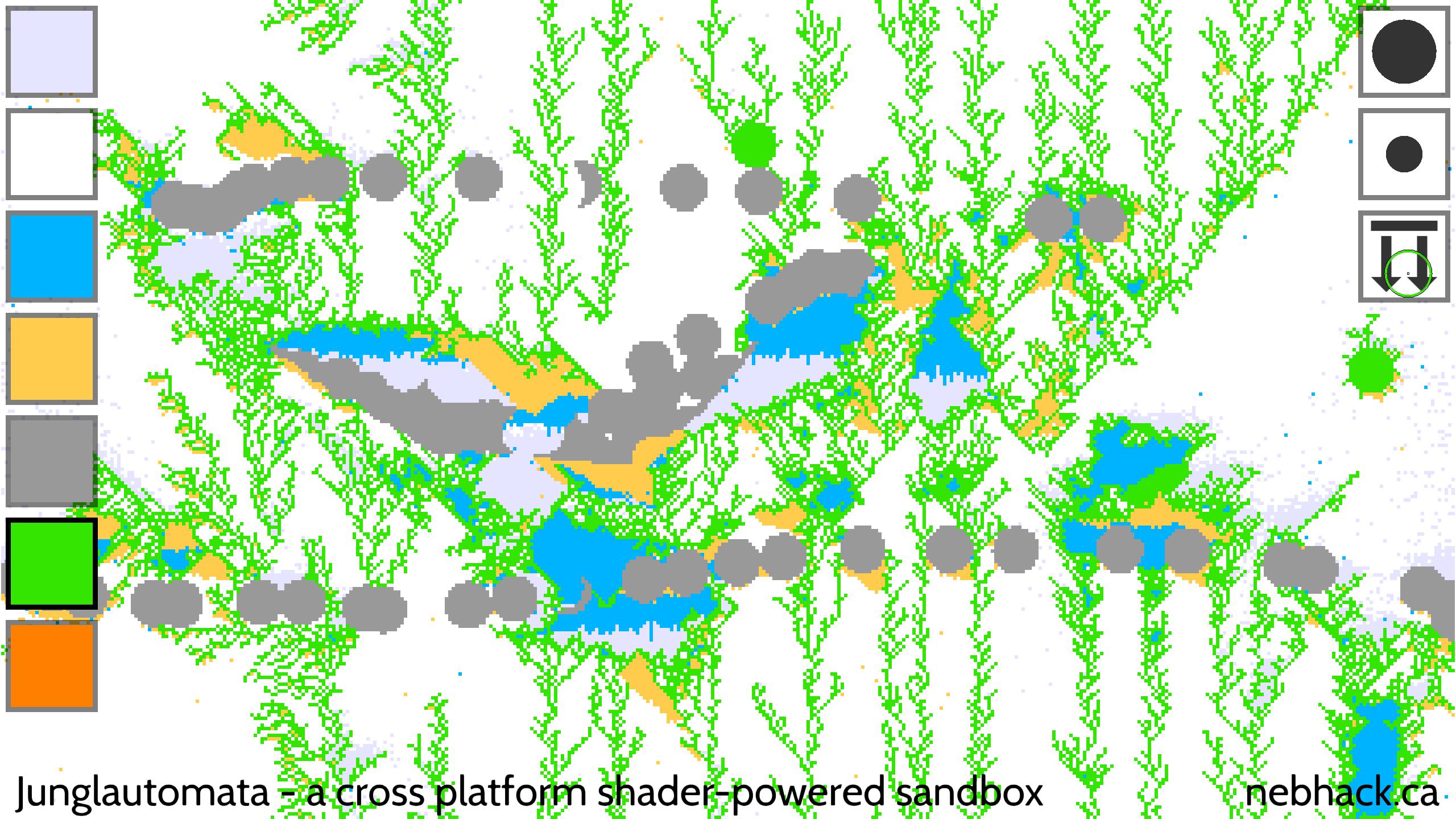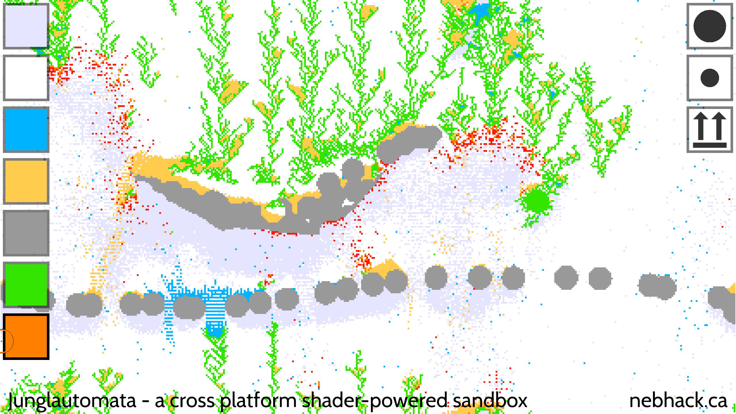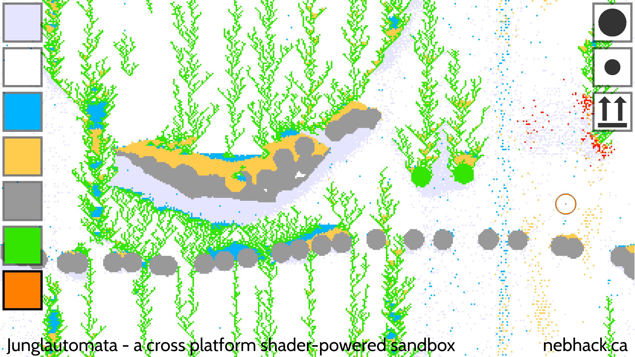 기술적 인 관점에서 한 번에 각 입자를 하나씩 처리하는 대신 셀룰러 자동화 기술을 사용하여 GPU에서 시뮬레이션의 모든 픽셀을 동시에 처리하기 때문에 다른 떨어지는 모래 게임과 약간 다릅니다. 이것은 비교적 효율적이라는 것을 의미합니다! 또한 물 물리학은 다른 시뮬레이션보다 조금 더 흥미 롭습니다.
