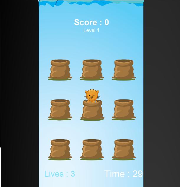 연주 방법 : 키티를 탭하여 키티를 찌르십시오. 3 명의 생명이 있습니다. 빈 자루 나 다른 동물을 클릭하면 목숨을 잃을 것입니다.