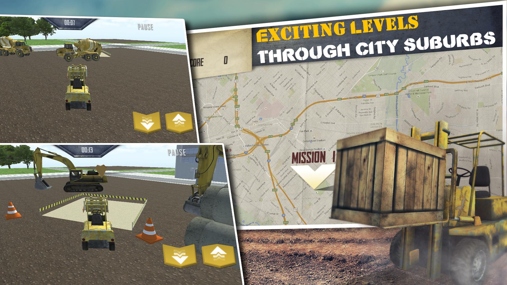 지게차 기계를 조심스럽게 운전하면서 주차장쪽으로 가져 가면서 빠르게 다가오는 도시 교통 및 기타 차량으로의 충돌을 피하기 위해 노력하십시오. 건설 도시 하에서는 손상이 줄어들 필요가 없으므로 특별한 주행 SIM 기술로 기계를 다루십시오.