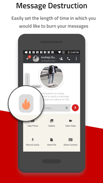 * Funcionalidade de queima protege as mensagens de texto com autodestruição automática