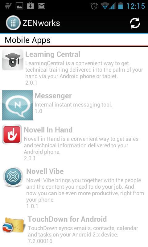 O aplicativo de usuário da NOVELL® ZENworks ® Mobile Management garante que você tenha os aplicativos, arquivos e configurações de segurança do Android, o tempo todo. Ao se conectar ao próprio servidor de gerenciamento móvel ZENworks do seu departamento de TI, ele permite que seu departamento de TI mantenha seu dispositivo otimizado para sua produtividade, incluindo: