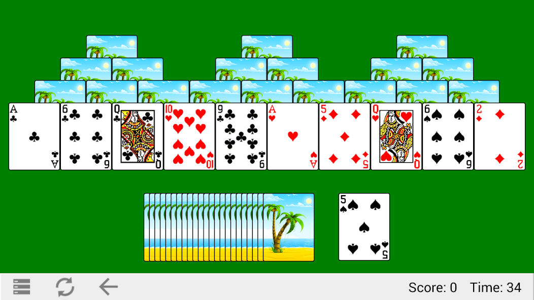 O jogo começa com dezoito cartas transmitidas de frente para o quadro para formar três pirâmides com três níveis sobrepostos cada. Sobre essas três pirâmides, há dez cartões voltados para cima.