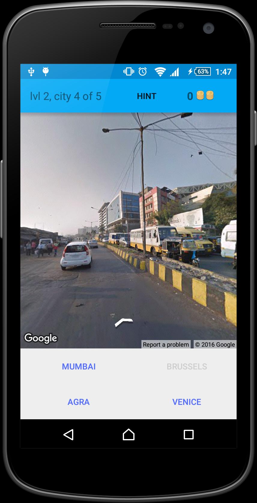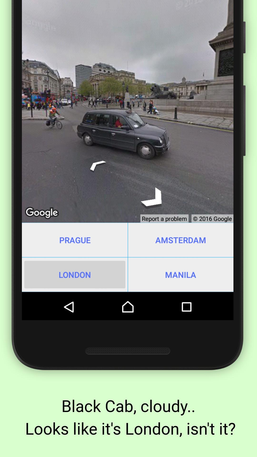 Você terá uma vista panorâmica de 360 ° dos lugares centrais nas cidades, pode andar por aí, ler sinais, assistir arquitetura, procurar atrações famosas e depois adivinhar a cidade. Mais você vai mais difícil, será. Suas tarefas são o palpite em que cidade você é.