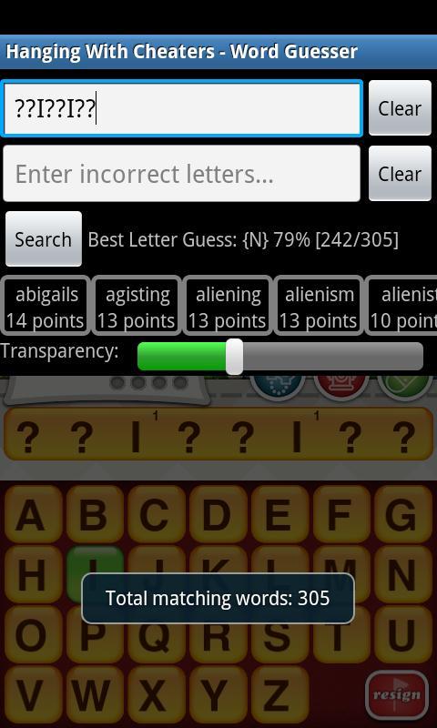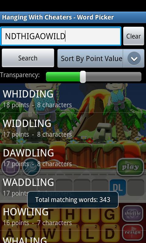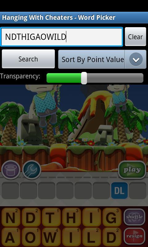 Use a capacidade de várias tarefas do Android para alternar entre o seu jogo de palavras e pendurar com trapaceiros e, em seguida, use o controle deslizante da transparência para ver a palavra jogo em segundo plano.