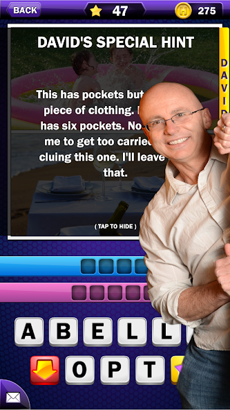 A resposta de cada quebra-cabeça são Just 2 Words -um emparelhamento comum ("Brownie Points"), o nome de uma pessoa famosa ("Elton John"), ou uma divertida combinação de palavras que é aparente depois de descobrir as pistas da imagem de David!