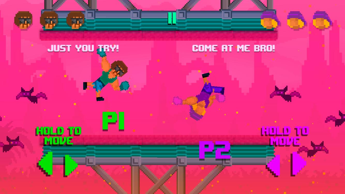 Bata seu amigo em um em um MMA Battle ou teste suas habilidades contra o poderoso jogador da CPU! Lute, chute e faça um soco no seu oponente da plataforma e entre na lava abaixo!