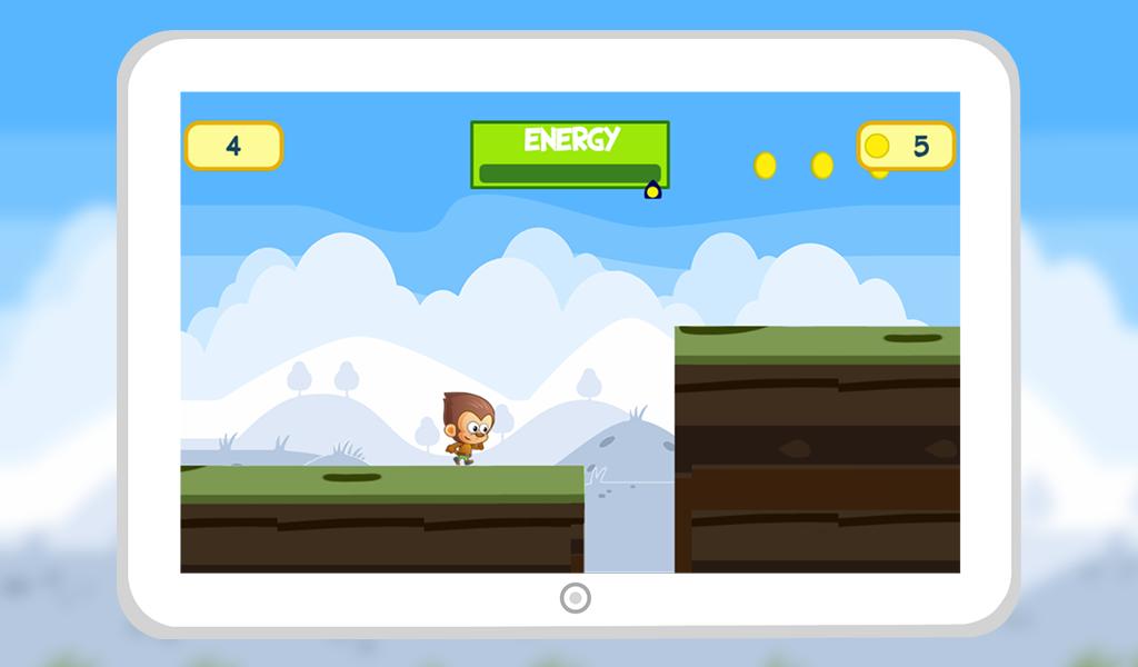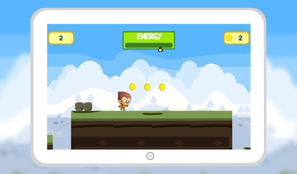 O jogo é muito simples, basta tocar na tela para deixar o macaco pular e correr