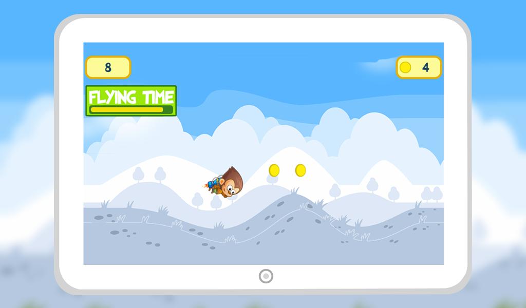 Monkey Jungle Jet Pack Flying Run é um gênero de corrida sem fim. É um macaco engraçado que pula sobre Cliff para Cliff e coleciona moedas para maximizar a pontuação. Pedras e casca de banana serão os obstáculos.