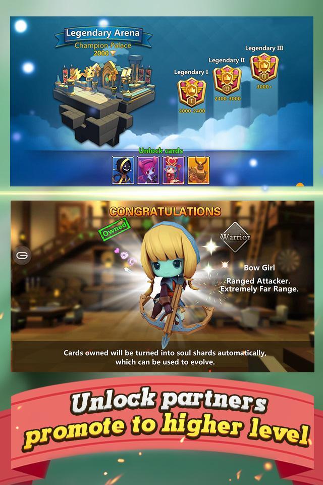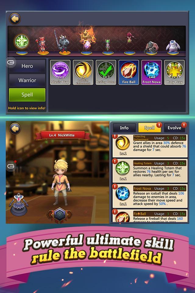 Os jogadores também podem criar um deck personalizado para implantar. Implantar heróis e ativar sua habilidade no tempo mais crucial ajudará você a vencer a batalha.