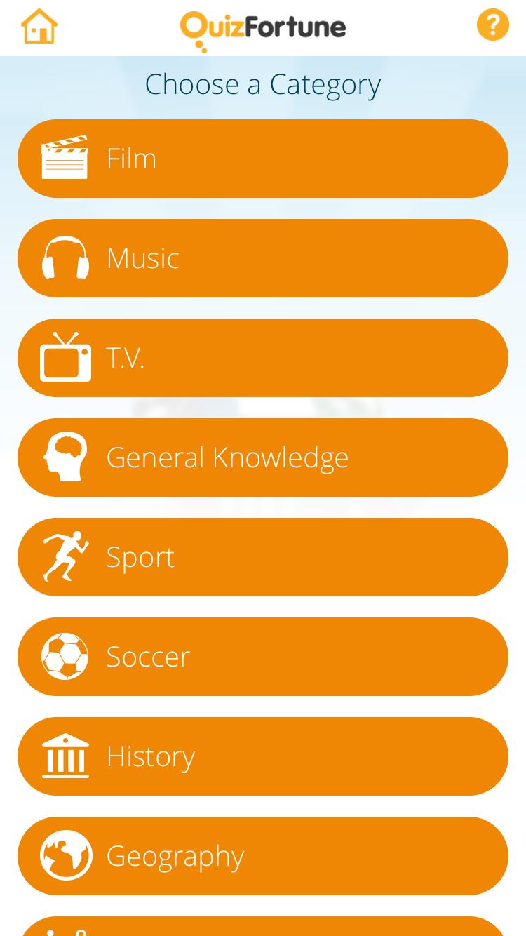 Cada uma das categorias onze de Quizfortune (cinema, música, TV, conhecimento geral, esporte, história, geografia, ciência e natureza, cultura e política, artes e literatura e comida e bebida) contém uma série de compactações de curiosidades com dez testes dentro. Trabalhe até trinta lâmpadas em cada pacote para receber o título de Quizmaster e ganhe 50/50 dicas de bônus à medida que avança!