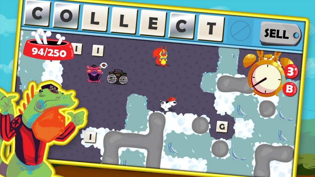 Passe por um labirinto subterrâneo, coletando letras e ortografia como avança. Evite inimigos, explodir rochas intransitáveis, implorar por curinga e cavar ossos. Jogue lento e atencioso para fazer as palavras mais longas que puder, ou correr contra o relógio para vencer os desafios dos bônus.