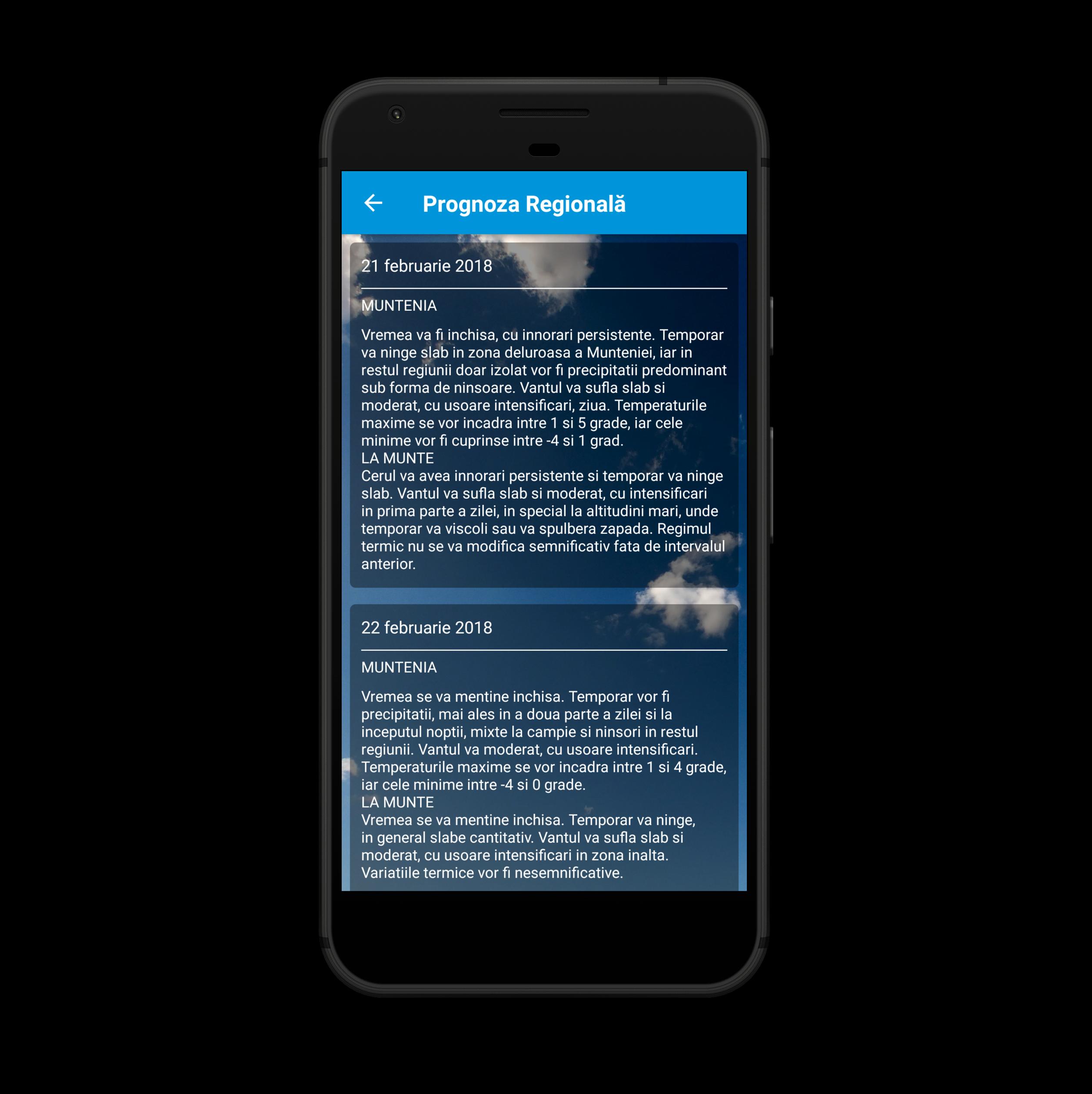 - специализированная погода и агрометеорологические данные для любого места в Румынии;
