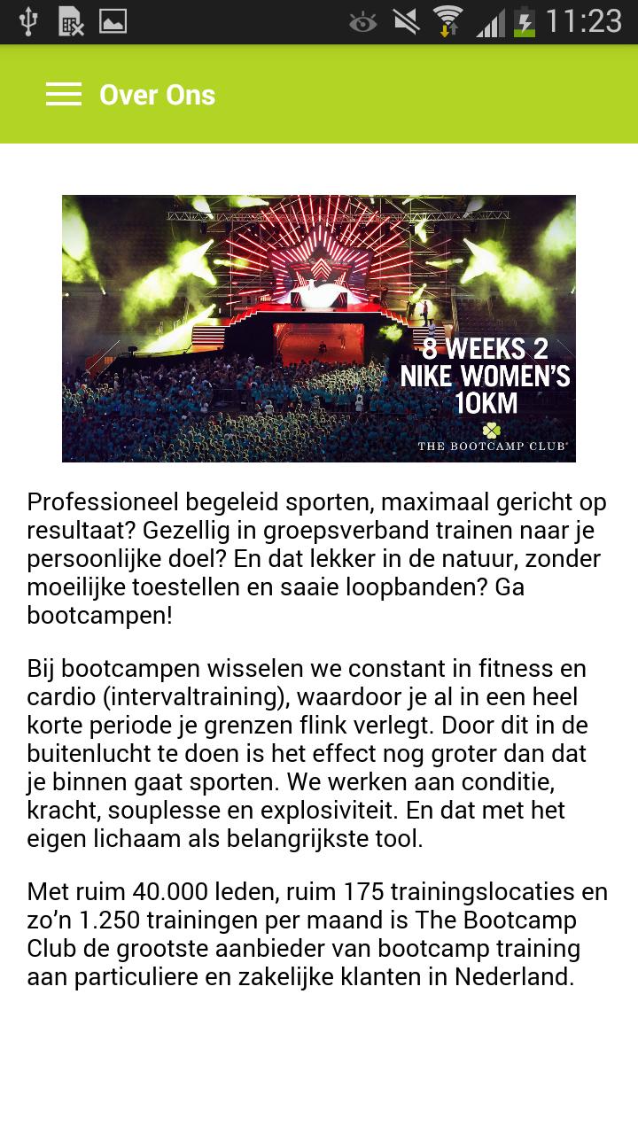 В The Bootcamp Club вы занимаетесь профессиональным руководством, максимально сосредоточившись на результатах. Уютное обучение в группе к вашей личной цели. И этот хороший в природе, без сложных устройств и скучных беговых дорожек! С более чем 175 местами в Нидерландах и 1500 тренингами в месяц вы всегда можете прийти к нам куда -нибудь поблизости. С помощью этого приложения вы можете зарегистрироваться и остановить обучение, и вы можете приобрести подписку. У вас также есть шанс выиграть существенные скидки или бесплатные продукты у одного из наших партнеров. И вы можете участвовать в нашей программе лояльности.