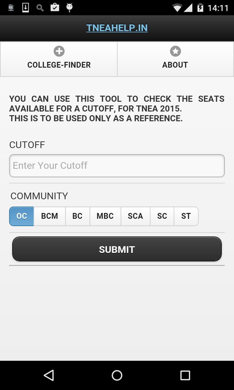 Вы также можете прочитать больше об этом в блоге: http://tneahelp.in/blog.php?title=tnea-college-finder-2015 android-app