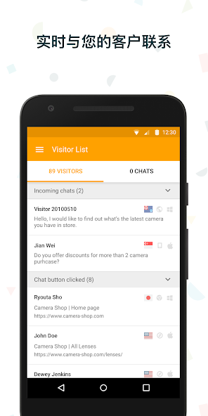 • Никогда не пропустите сообщение о чате от клиента и не получите уведомление, когда посетитель находится на вашем сайте с полной поддержкой уведомлений