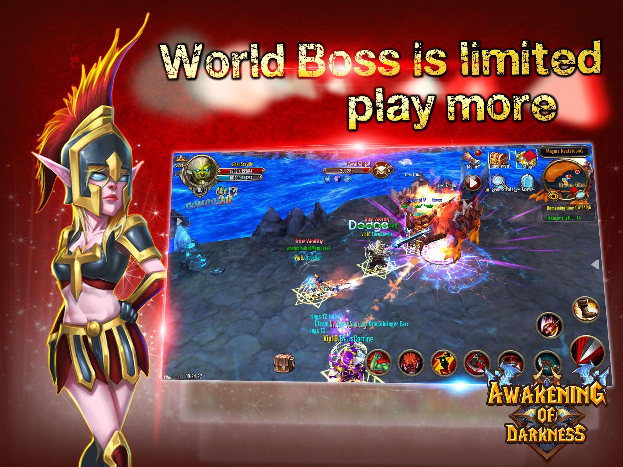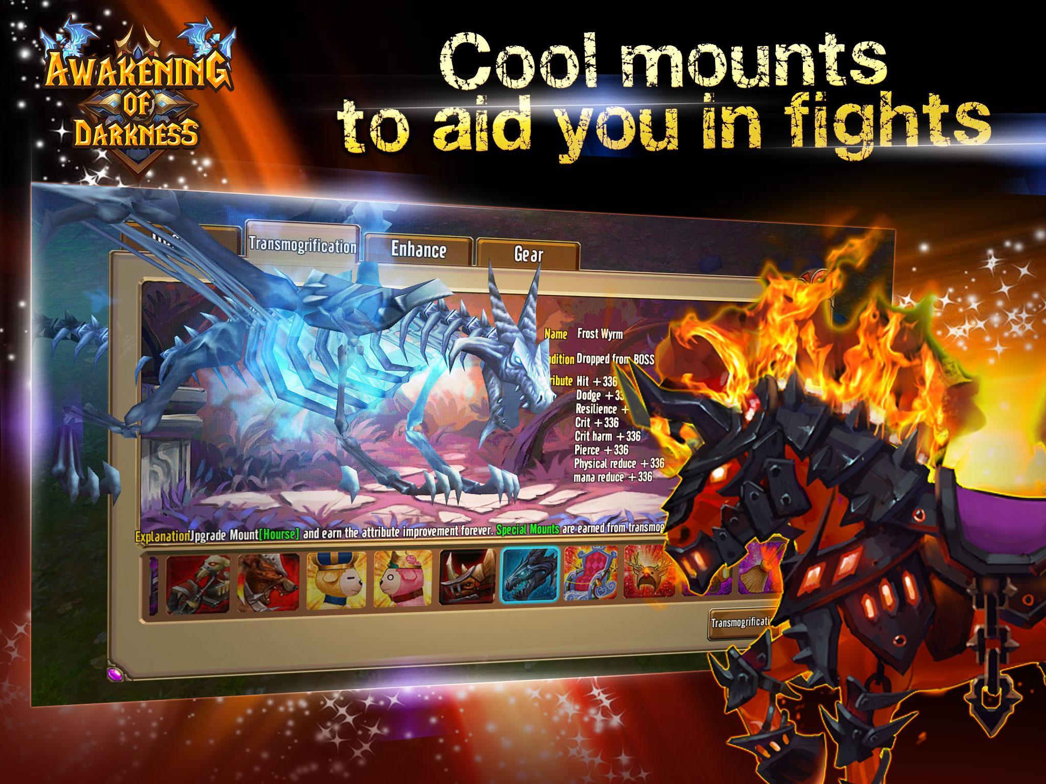 Awakening of Darkness - это 3D -мобильная игра PVP, которая позволяет игрокам испытать совершенно новый режим игры. Western Fantasy устанавливается в качестве фона, наряду с лучшими художественными дизайнами мира, новейшим 3D-двигателем Unity, великолепными эффектами, уникальным опытом игры и системой достижений, мы хорошо подготовлены, чтобы представить вам лучший MMORPG года!