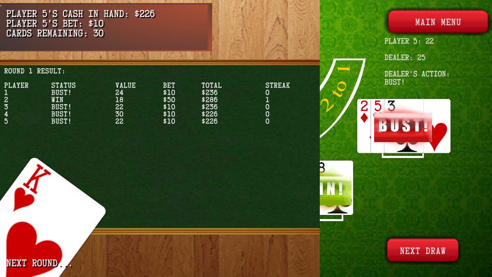 Black Jack (также известный как 21) - это карточная игра, которая позволяет игроку выиграть игру, сравнивая свои карты с картой дилера. Цель этой игры - выиграть игру, обыграв карты дилера, сделав ценность выше, чем дилер. Уловка в том, что ваши карты должны быть 21 и ниже или вы проигрываете. Скачайте и играйте в эту карточную игру бесплатно. Наслаждаться!