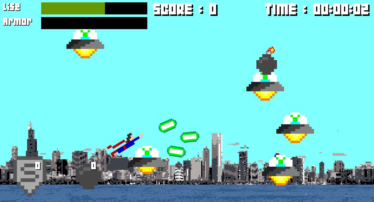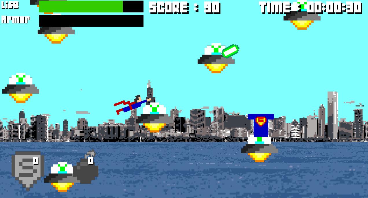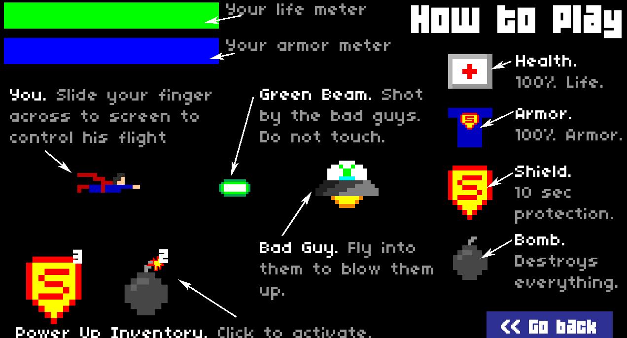 Проведите по вашему экрану, чтобы контролировать траекторию полета Кларка, когда он сталкивается с самыми свирепыми врагами в мире - инопланетяне! Не вроде Ридли Скотта. Тот, который имеет щупальцы и сидит в НЛО, стреляющих в зеленые лучи (Кларк настаивает на том, что это не криптонитовые лучи).